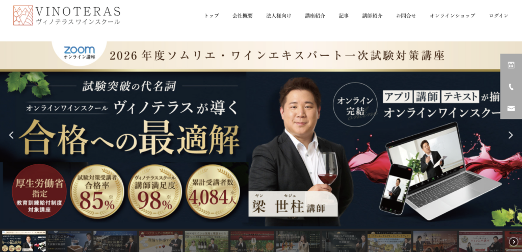ソムリエ・ワインエキスパート試験対策の勢力図を大きく塗り替えたのが、日本初のオンライン完結型ワインスクール「ヴィノテラス」です。